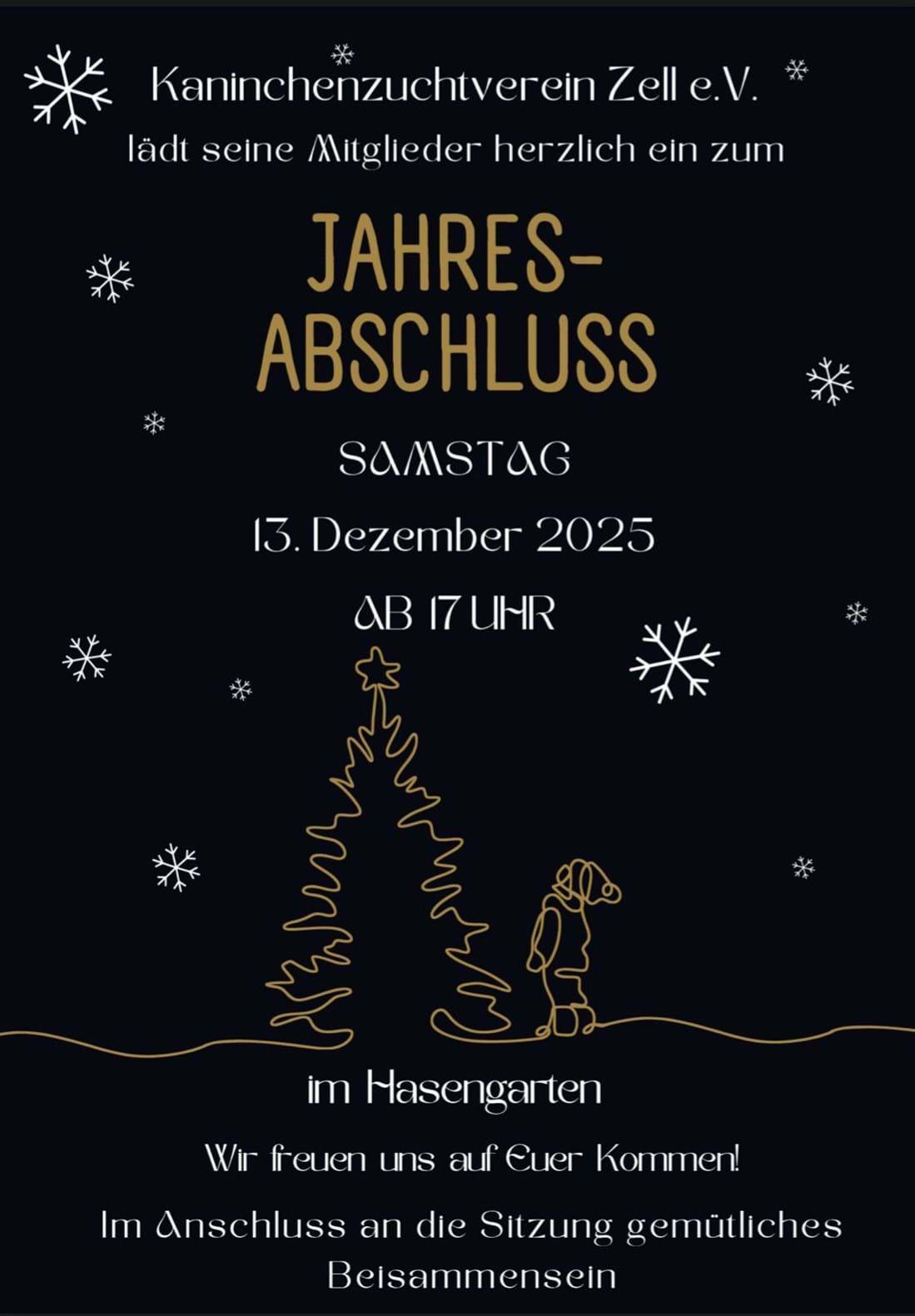 27. November 2025: Jahresabschluss am Samstag, den 13.12.25 ab 17 Uhr im Hasengarten