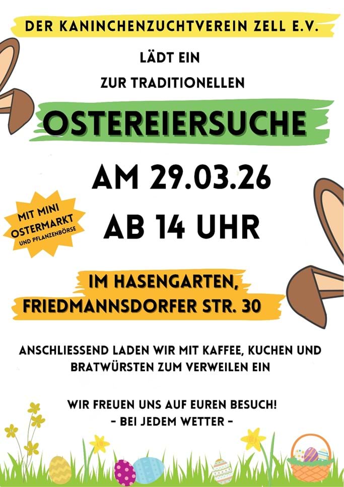 25. März 2026: Ostereiersuche im Hasengarten am 29. März