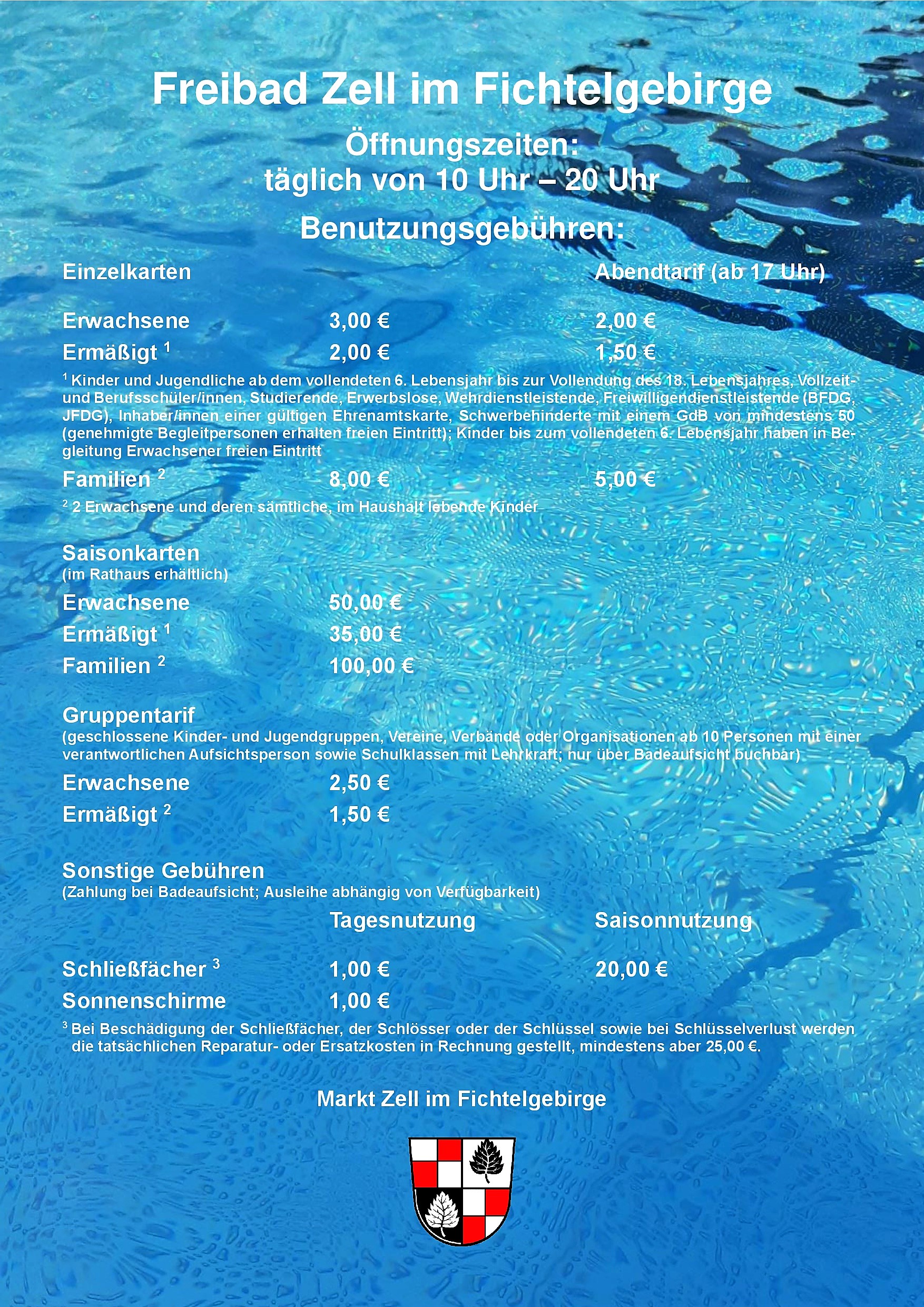 Die Badesaison im Zeller Freibad beginnt am 24.05.2025 und endet voraussichtlich am 07.09.2025. Bei entsprechend guter Witterung öffnet das Freibad bereits ein Woche früher am 17.05.2025.